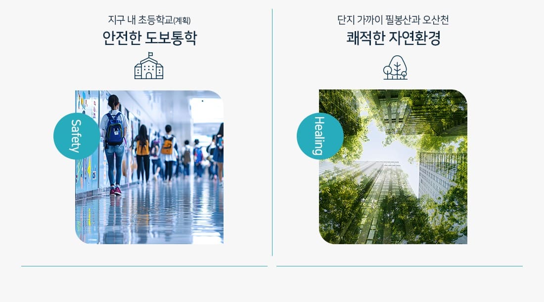 단지는 차량 이동 시 동탄신도시 진입까지 약 5분 정도 거리로 롯데백화점 동탄점, 트레이더스 홀세일 클럽 동탄점, 한림대학교 동탄성심병원 등 편의시설과 다양한 학원들이 밀집되어 있는 동탄 학원가를 손쉽게 이용할 수 있습니다. 이마트 오산점, 롯데마트 오산점, CGV 오산중앙점을 비롯한 오산시 내 인프라도 가깝게 방문 가능합니다.